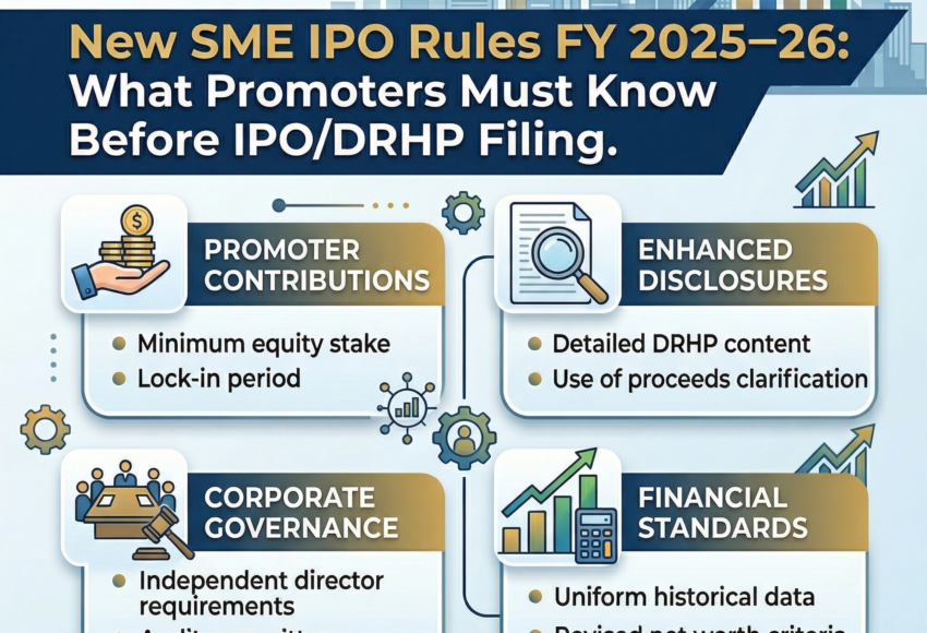 New SME IPO Rules 2025–26: What Gujarat Promoters Must Know Before IPO/DRHP Filing A plain-language guide to SEBI’s 2025–26 rule changes — eligibility, lock-in, OFS caps, fund-use restrictions, expanded Demat mandates, RPT compliance, and the new bidding process. CS Monika Bhatia, FCS, LLM | M.R. Bhatia & Co., Company Secretaries, […]